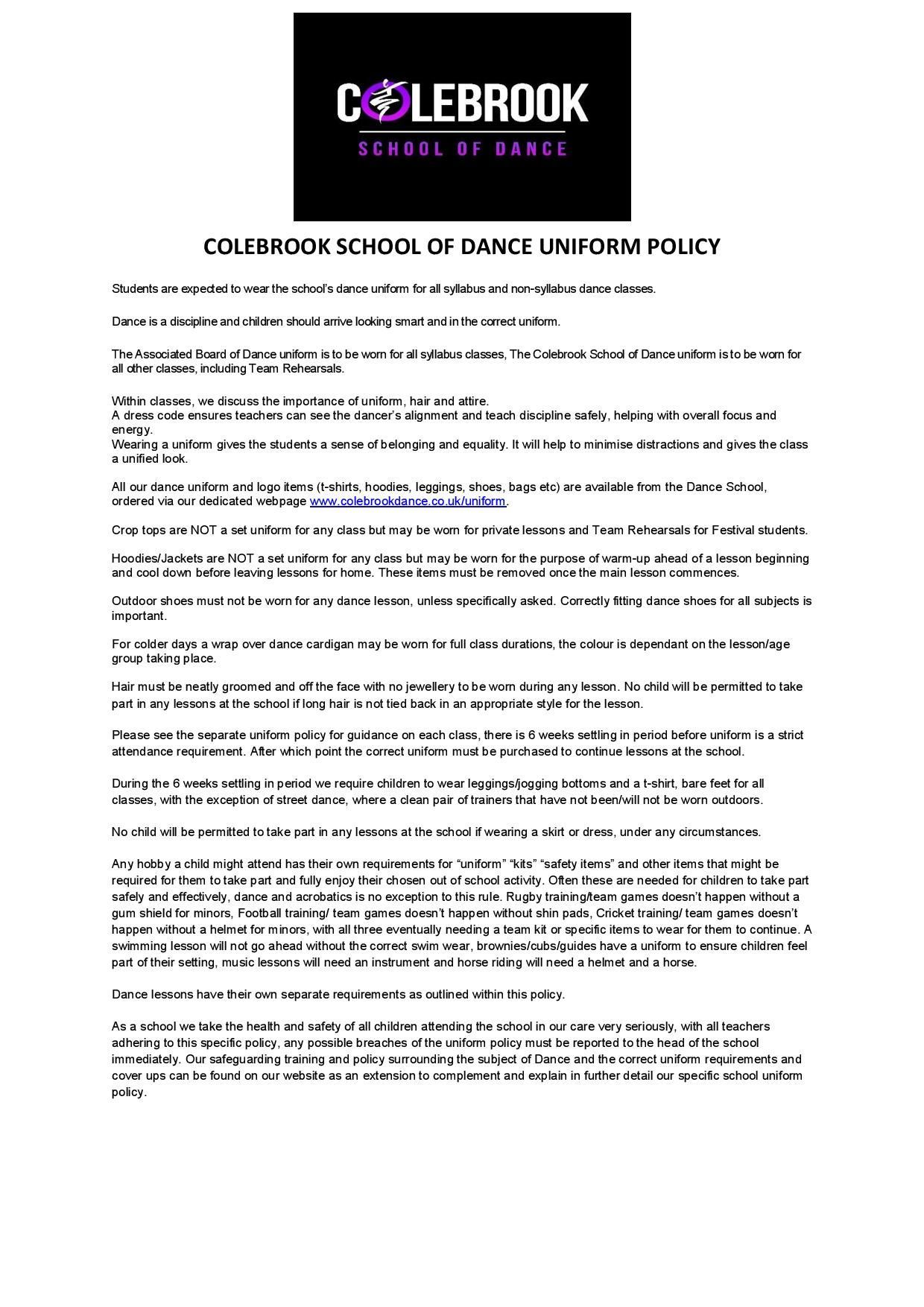 NEW BESPOKE SUBLIMINAL PRINT COLEBROOK DANCE UNIFORM INFORMATION